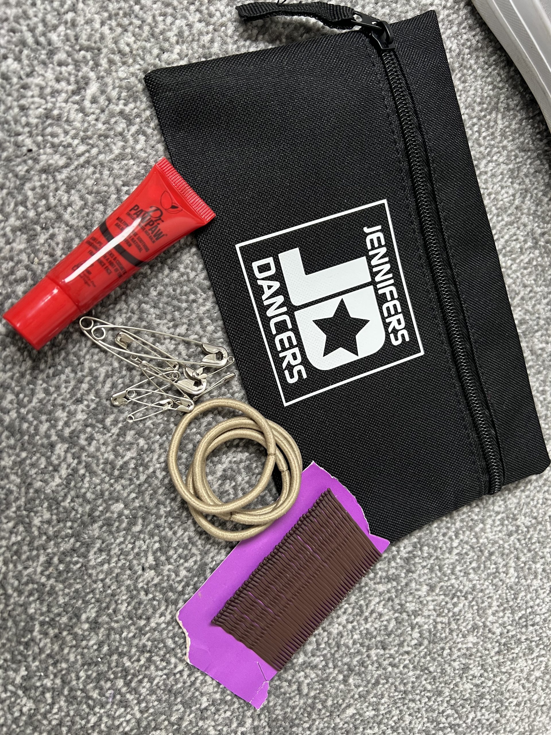 Black zip up hair and make up pouch. Great for shows and competitions.